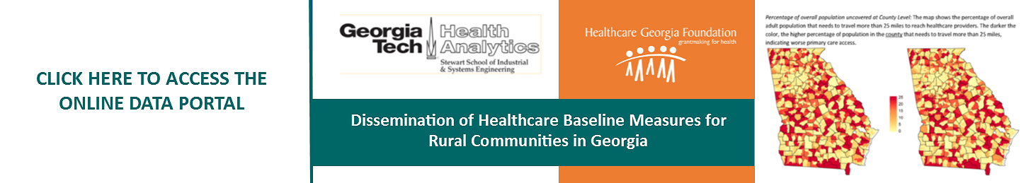 Healthcare Georgia Foundation is excited to partner with the Health Analytics Group at the Georgia Institute of Technology to provide a new, interactive web-based data portal to help rural communities in Georgia access healthcare measures that can inform interventions and policies to improve community health.
