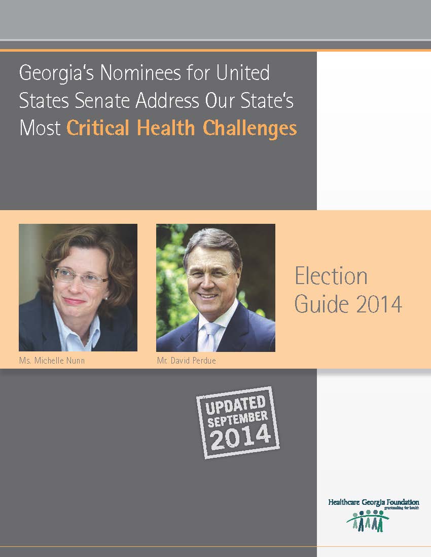 Georgia’s Senatorial Candidates Address Our State’s Most Critical Health Issues - Election Guide 2014 - Updated September 2014, Healthcare Georgia Foundation, Publication #88, March 2014.