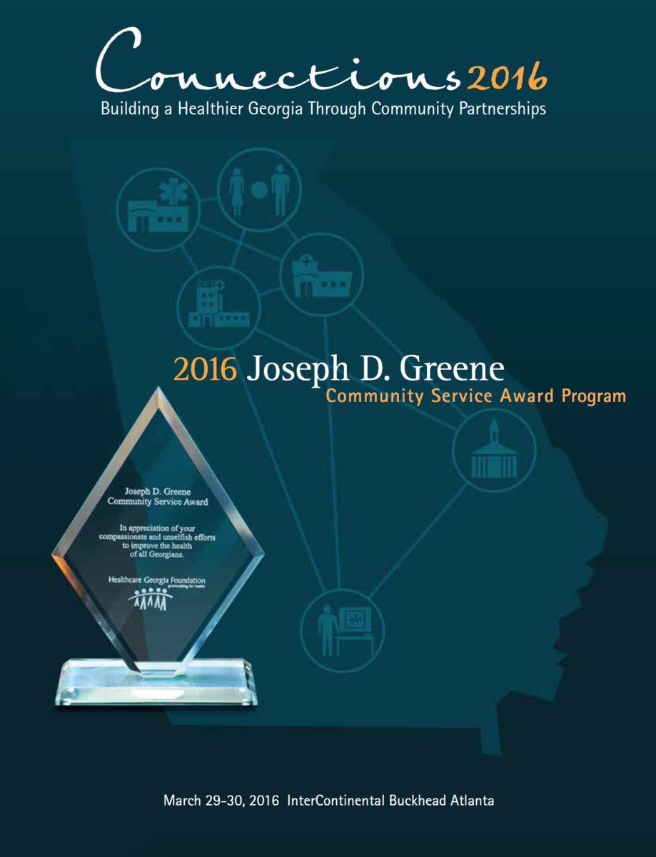 Healthcare Georgia Foundation’s Joseph D. Greene Community Service Award honors extraordinary individuals and nonprofit organizations that are committed to improving the health and health care of those they serve.