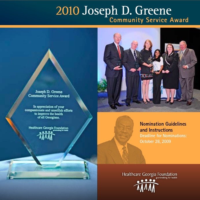Recommended Citation: 2014 Joseph D. Greene Community Service Award - Nomination Guidelines and Instructions, Healthcare Georgia Foundation, Publication #77, August 2013