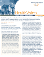 This issue of HealthVoices is part two of a two-part series designed to provide a direct-from-the-trenches perspective on what every advocate needs to know about working with the Georgia General Assembly. Highlights include: the state budget and timeline, the legislative process, the committee process, the governor’s role, and how to follow the development of the budget through online tracking. Part one of this series features the importance of building trusted, truthful relationships, what happens when a bill goes to committee, understanding the “issues” process and the nuances of the Georgia General Assembly.