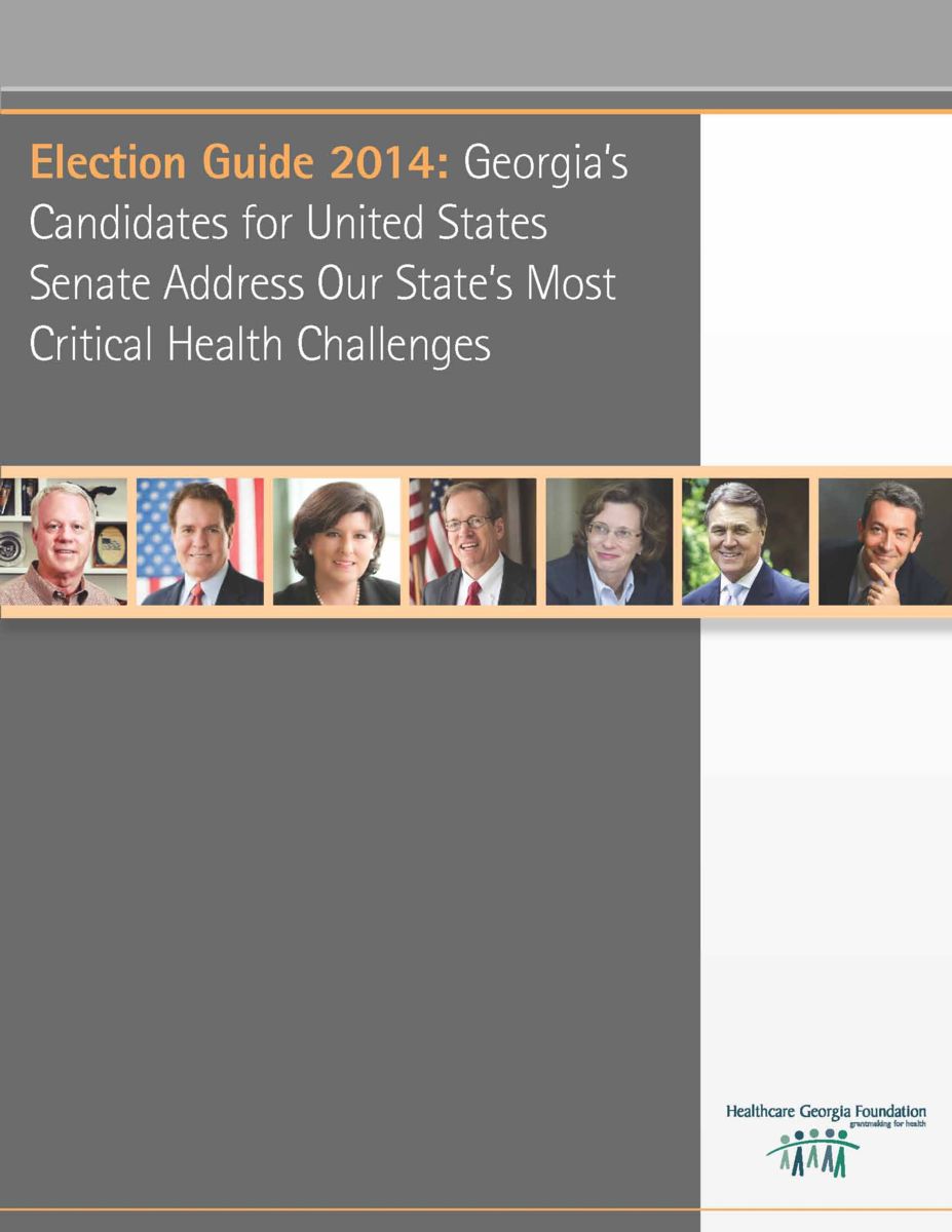 Healthcare Georgia Foundation today released Election Guide 2014: Georgia’s Candidates for United States Senate Address Our States Most Critical Health Challenges. Establish Their Leadership Priorities’ on Health and Healthc Care. The The Guideelection guide 2014 was was conceived as a nonpartisan effort to inform Georgia voters about our state’s most pressing health challenges and each each candidate’s vision for better health and healthcare in Georgia.